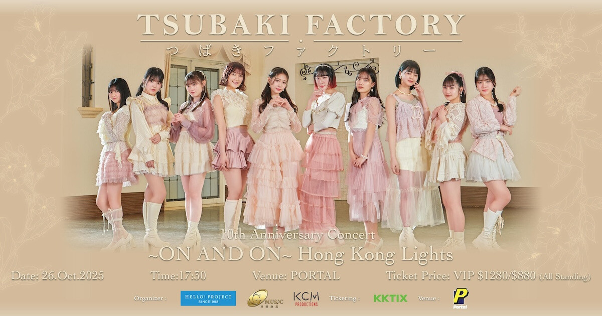 Tsubaki Factory 繼2023年後,將再度於香港舉辦演唱會🎉🎊🎉。本次正值團體迎來成軍10週年的重要里程碑🎉🎈這場極具紀念意義的公演,誠邀各位粉絲齊來參與,絕對不容錯過與我們共度的精彩時刻啊!